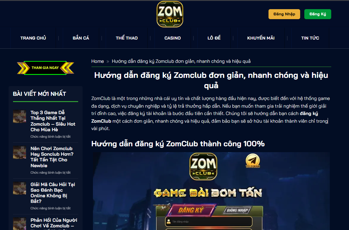 Zomclub hiện đang là một trong những cổng game giải trí trực tuyến được nhiều người chơi quan tâm nhờ giao diện đẹp, dễ thao tác và kho trò chơi đa dạng. Để trải nghiệm đầy đủ các tính năng, người chơi cần đăng ký tài khoản Zomclub. Bài viết dưới đây sẽ hướng dẫn bạn chi tiết cách đăng ký, kèm theo những lưu ý quan trọng giúp quá trình tạo tài khoản diễn ra nhanh, thuận lợi và an toàn tuyệt đối.